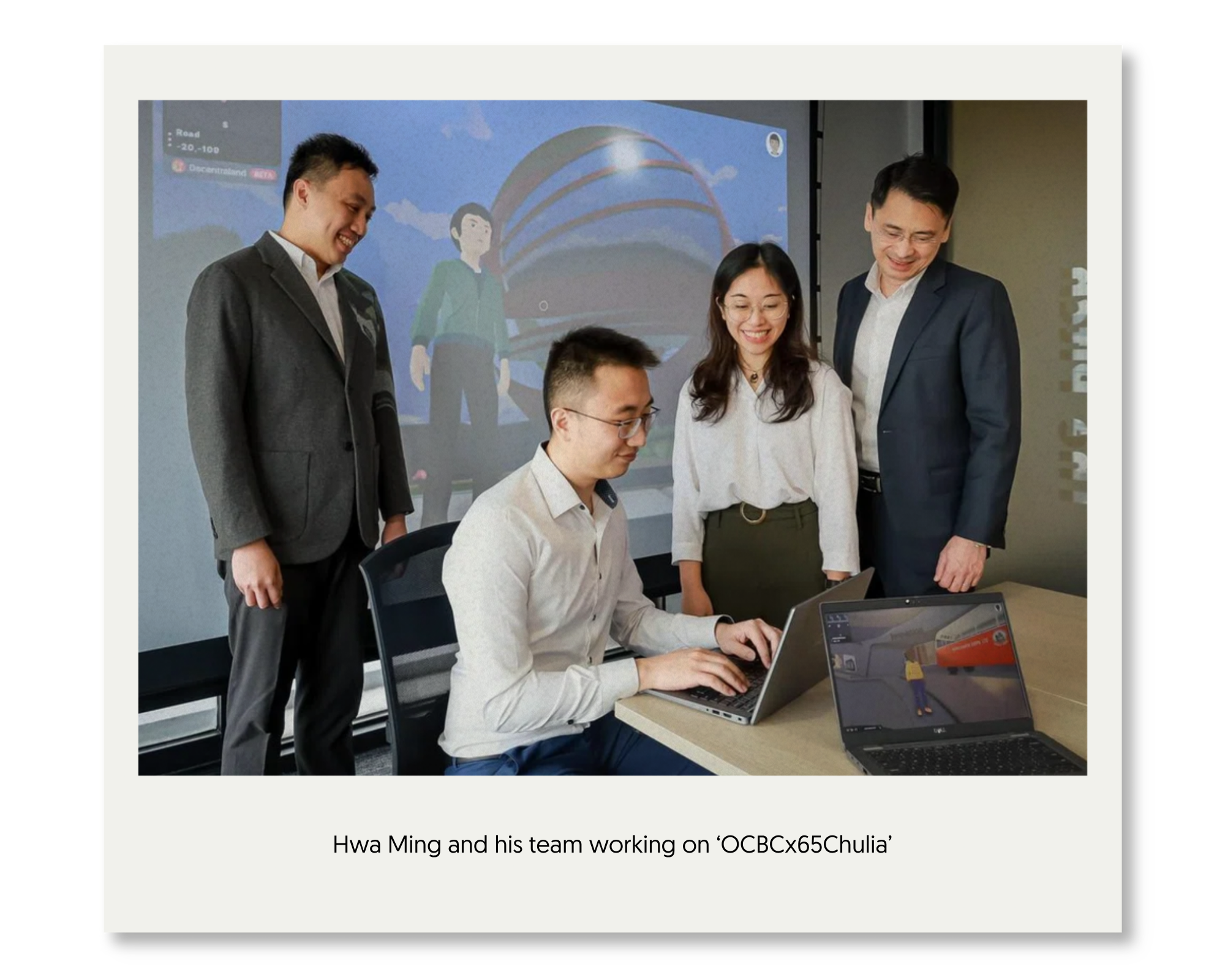我在营运与科技部的首个岗位节奏快、挑战性强,参与了多项创新项目,探索银行如何与 Z 世代和 Alpha 世代等年轻群体建立互动。其中一段令我印象尤为深刻的经历,是担任银行元宇宙平台 OCBCx65Chulia 发布项目的项目负责人。即便当时我仍是一名初级员工,直属经理 Malie Foo 依然鼓励我组建并带领团队。他对我的信任,帮助我突破了经验不足带来的不安。