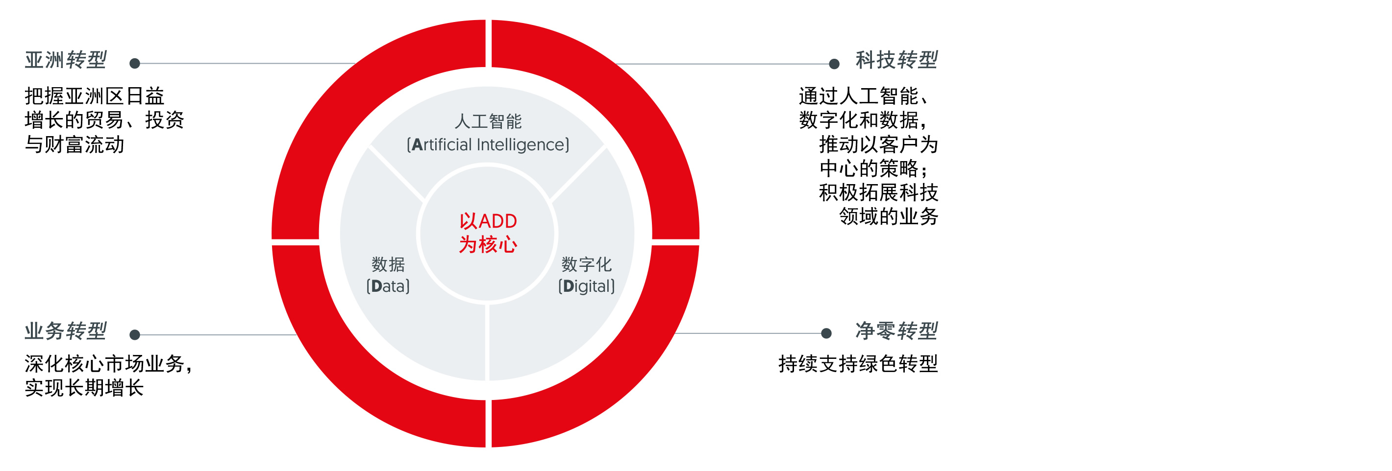 我们顺势而为,推动四大核心转型,实现加速增长。