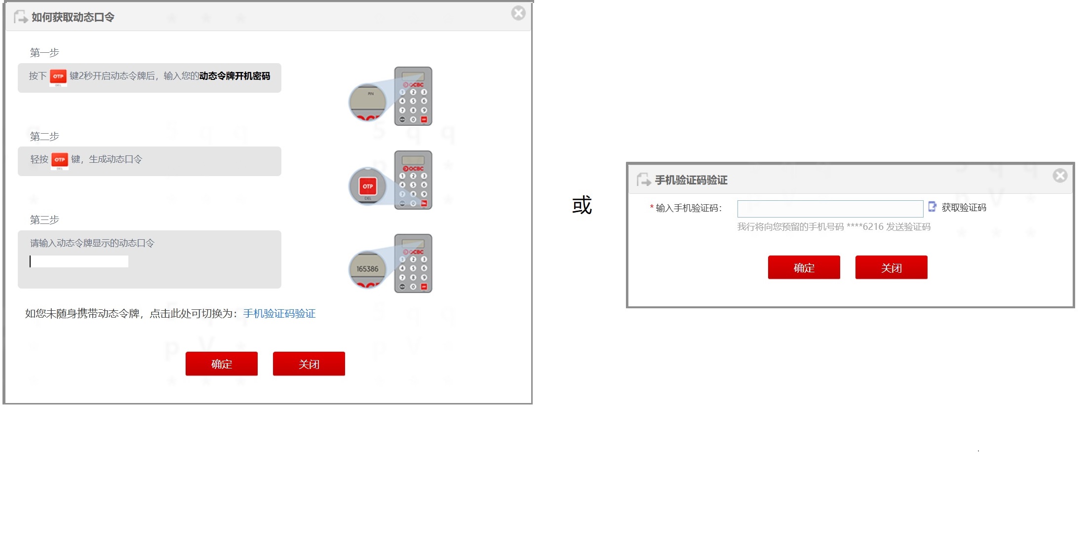 第二步:输入动态口令或手机验证码;