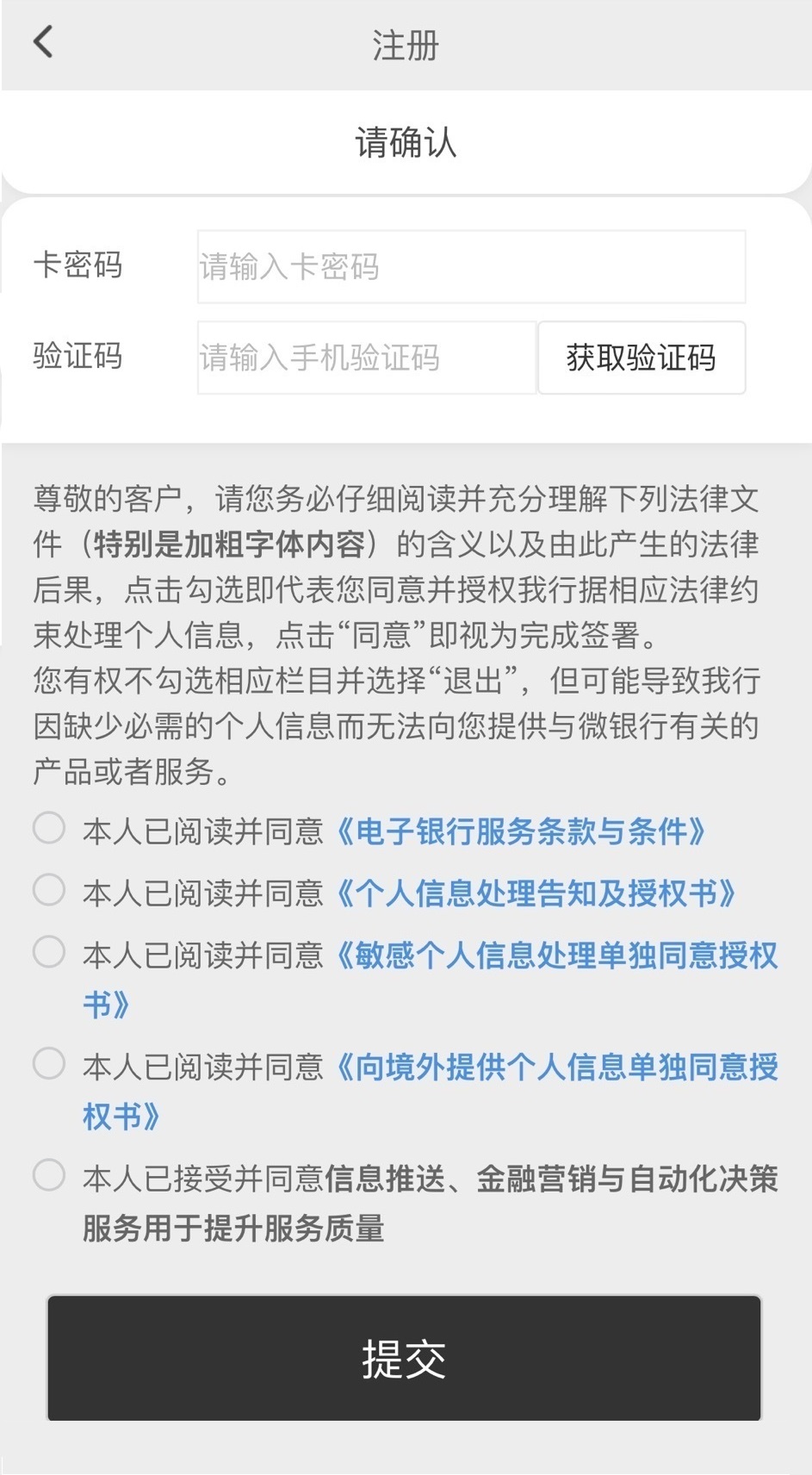 第四步:验证成功后即完成微信银行注册。
