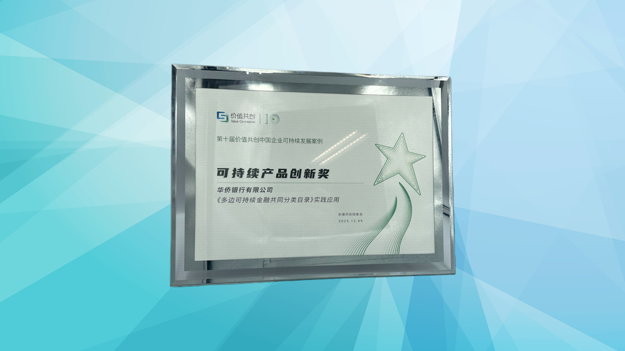 OCBC China, through multiple practical applications aligned with MCGT, was honored with the “Sustainable Product Innovation Award” at the 10th Value Co-Creation (ESG) Annual Trend Forum in 2025. The “Value Co-Creation” selection of sustainable development cases among Chinese enterprises is the first academic award in China designed and researched by higher education institutions. This award aims to systematically uncover innovative highlights in sustainable product practices across various industries. Winning this award fully demonstrates OCBC China’s commitment to embedding sustainability into its business, providing precise and enduring financial support for the transformation of the real economy, and truly driving the synergy between capital and the “dual-carbon” goals.